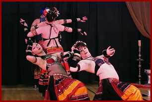 elements borrowed and adapted from Bharata Natyam, the folkloric